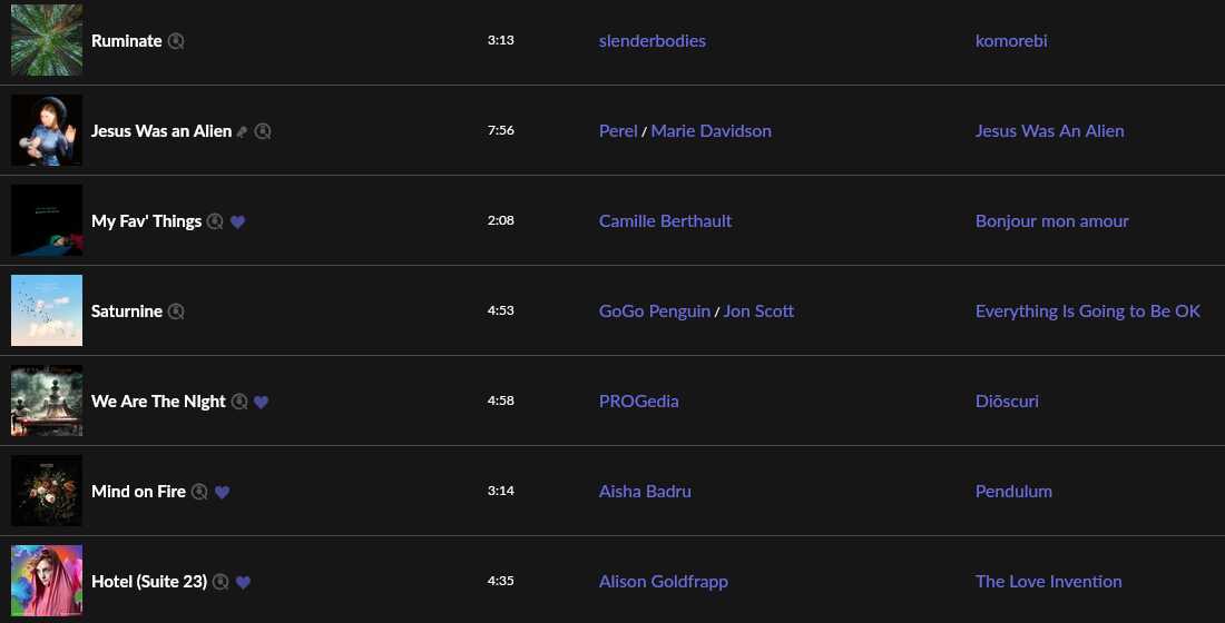 Here are the tracks I used for this comparison. I don’t mention the specific track in the comparison below but you can at least get an idea for the music I enjoy on them. It’s mostly a mix of pop, electronic, and jazz.