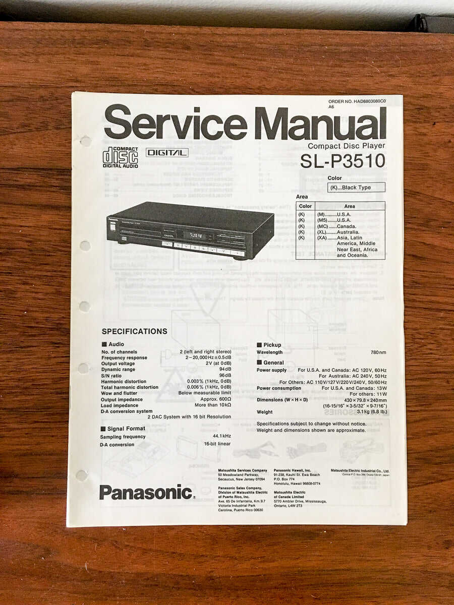 Here’s a photo of the old Panasonic SL-P3510 and a photo of the manual: