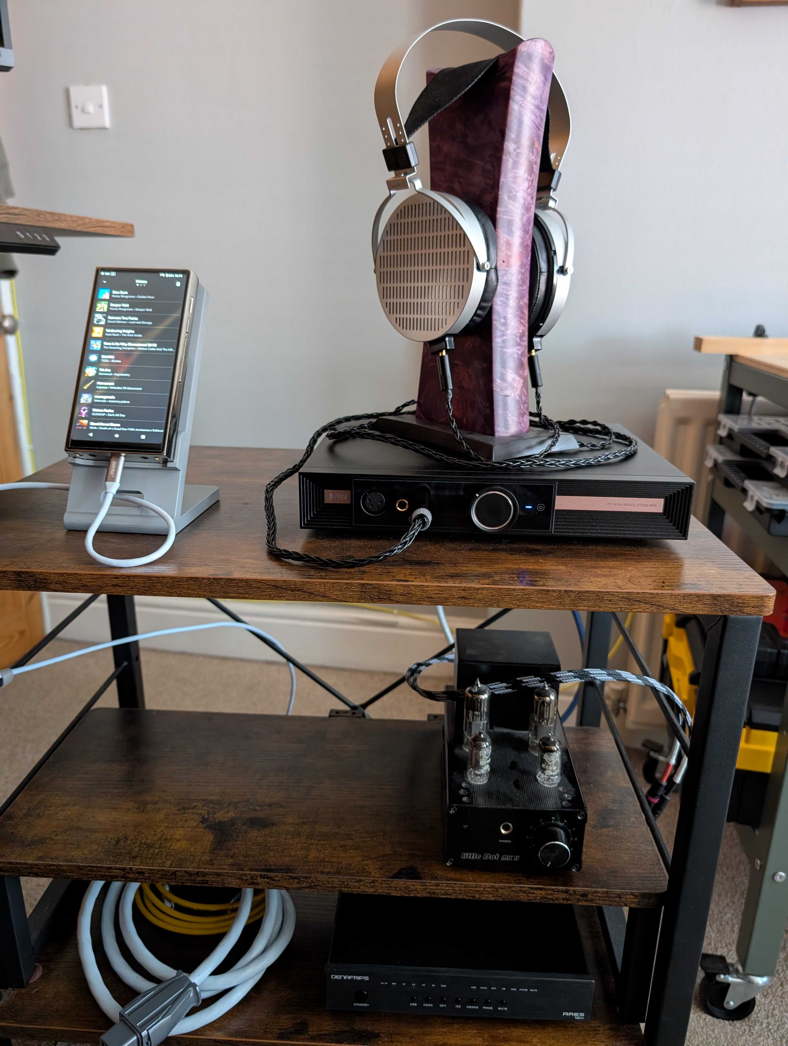 Now that I’m quite close to what I want from my system, I only need to make a few more tweaks. One small misstep I have already made was getting a Custom Cans headphone cable for the Cosmo. I’m sure they’re an upgrade from a bad stock cable, but the Moondrop cable sounds good. The Custom Cans cable did at least emphasise that, although the P2 is driving the Cosmo well, the treble reproduction on P2 is not up to scratch; it sounds grainy/low res almost (makes cymbal hits on Tool’s track ‘Lateralus’ sound almost like white noise). The Custom Cans cable make me pay really close attention to the treble of the P2 this afternoon during my first real listening session with the Ares II (listening during work doesn’t count as it is maybe getting 60 % of my brain’s attention); I heard this when I had the D1se the other week, but I thought it was that DAC. For a cable, I’m going to go for an Arctic Agento in the near future, unless I spot a reasonably priced, better silver cable for similar money.