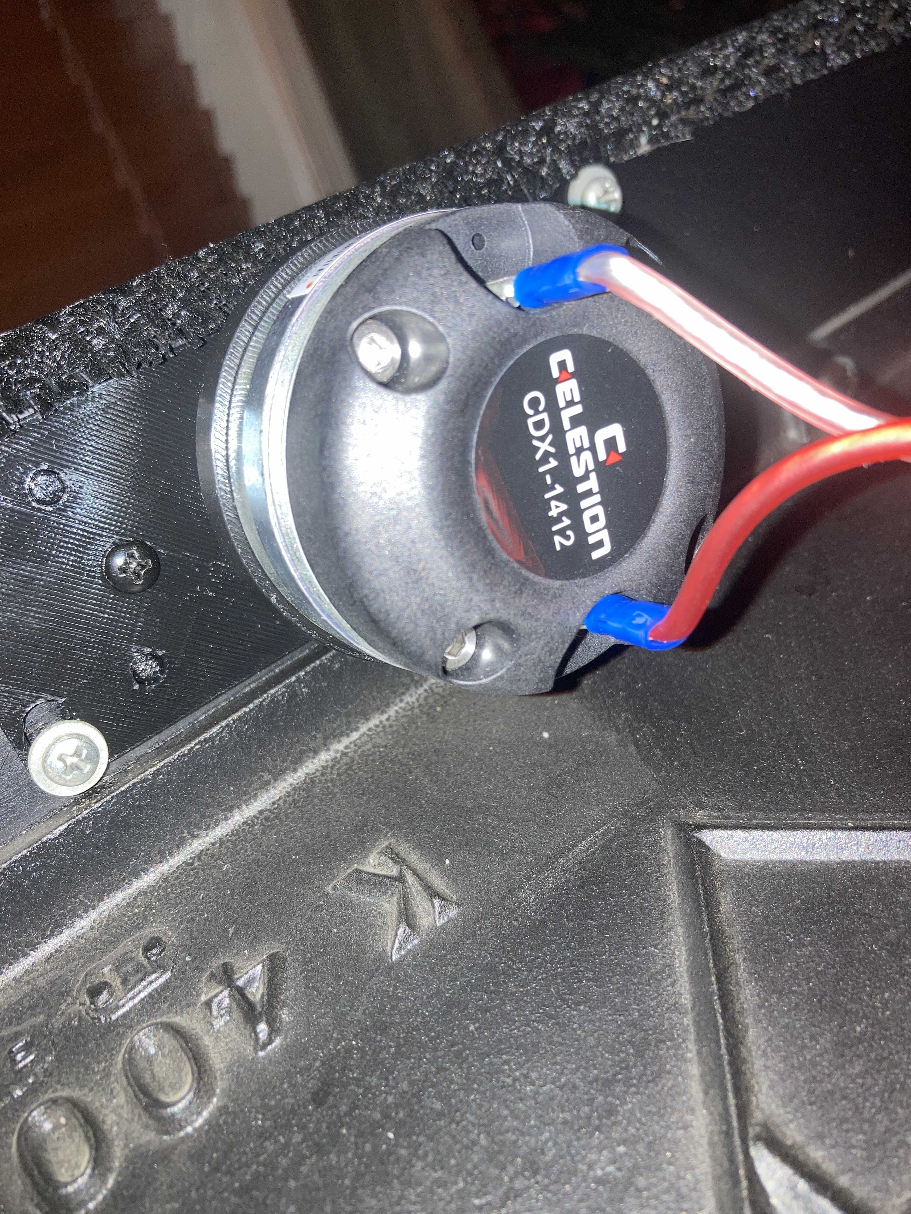 New Celestion CDX1-1412 tweeters and 3D printed horns have been installed. I was careful and patient in removing the tops off my K-horns and that simply made installation fairly easy other than the time it took. I also took the opportunity to gently moisturize and polish the veneer on the cabinets before going into my homes “dry season” this winter.