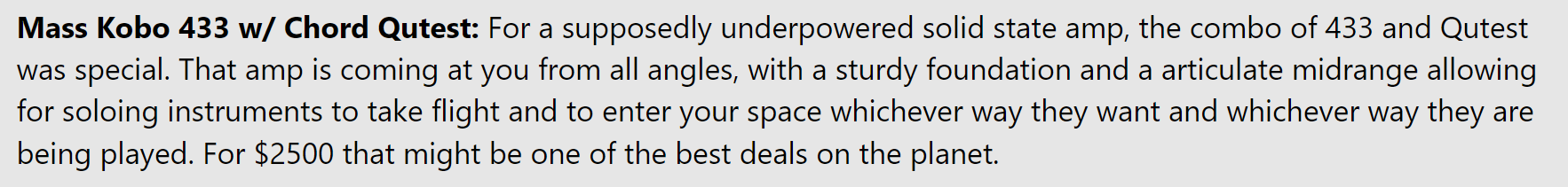 Would probably help to know what headphones he was using. But I do kinda do want to try out a Mass Kobo amp 1 day, everyone always had really good impressions of them no matter what model it is.