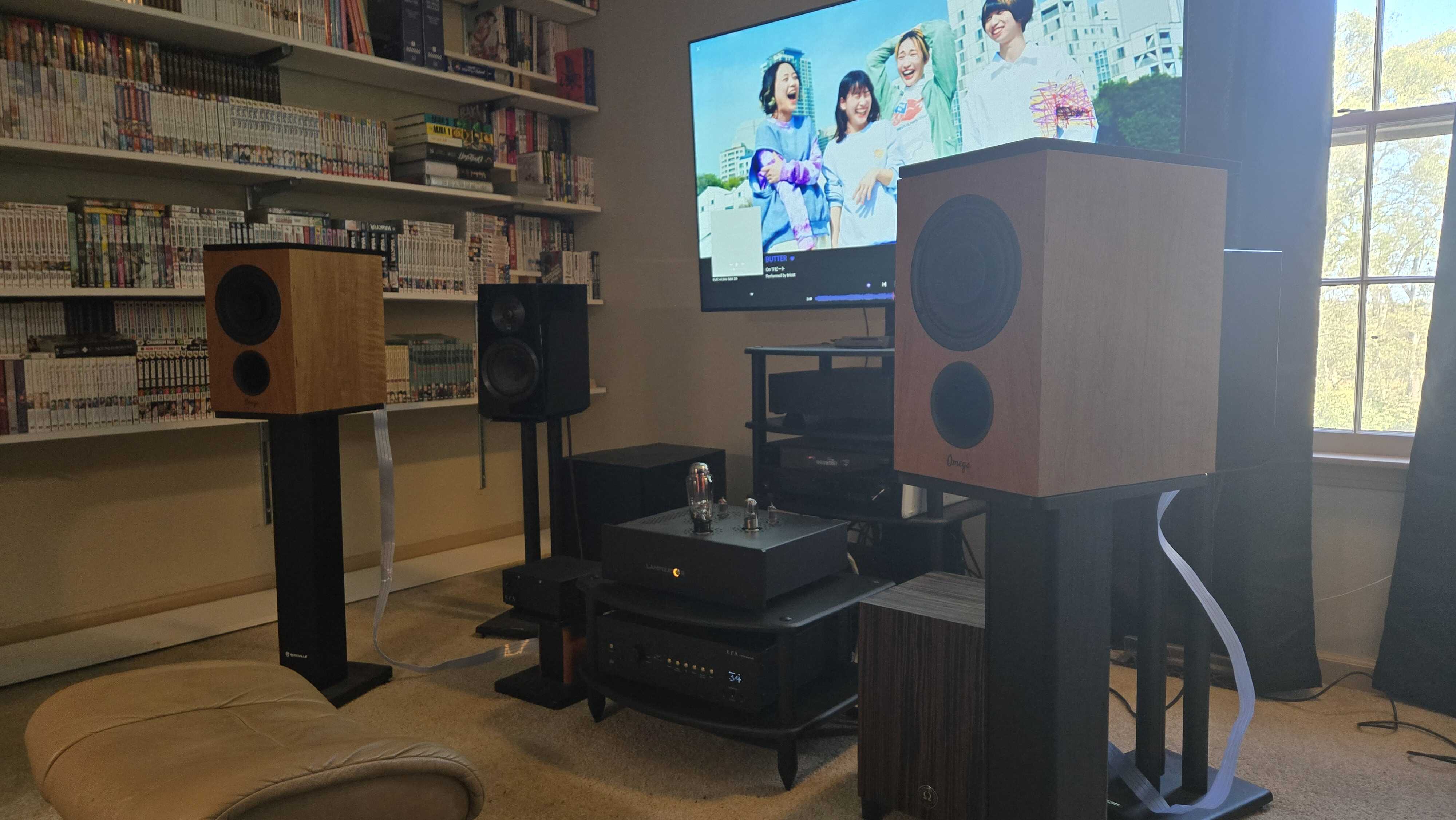 Im happy with the setup for now but ive already figured out a better way to arrange everything, so I’ll be changing it in the next few weeks. I also want to look into better isolation, maybe some audio platforms for the amp stand and speaker stands. Im already eyeing a isoacoustics subwoofer stand. Room treatment will come eventually.