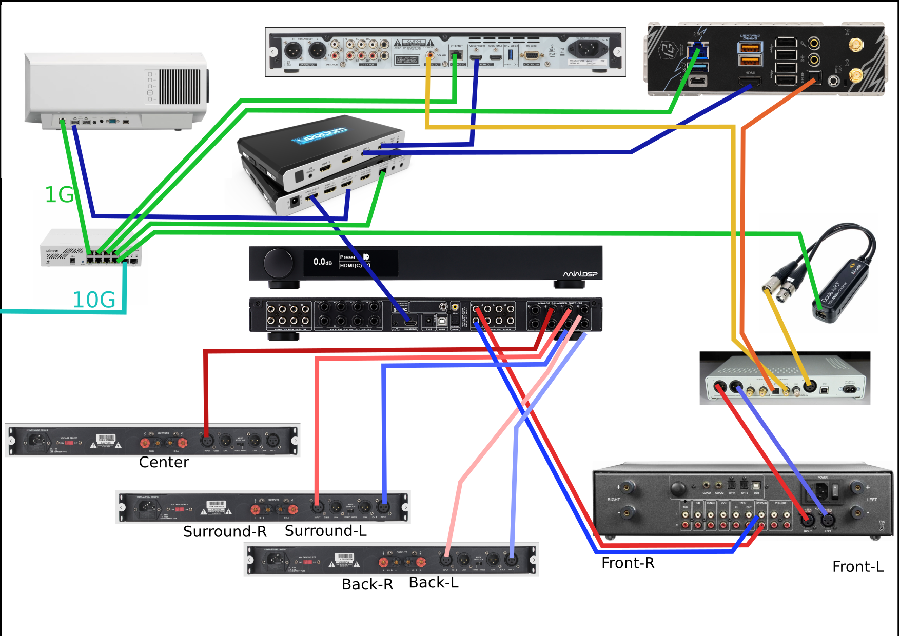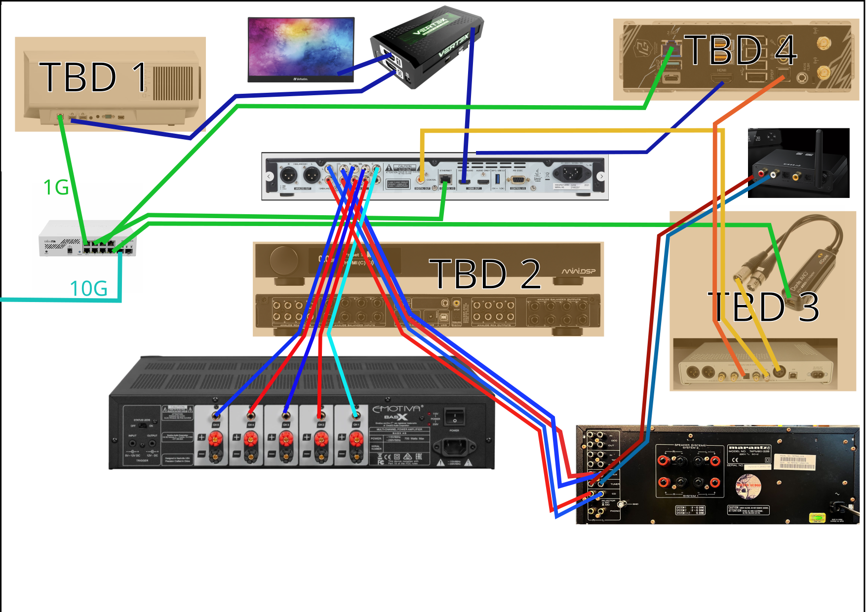 The cinema-chain is Tascam [RCA] > Atoll/Avantone [speaker cable] > 602’s, etc.