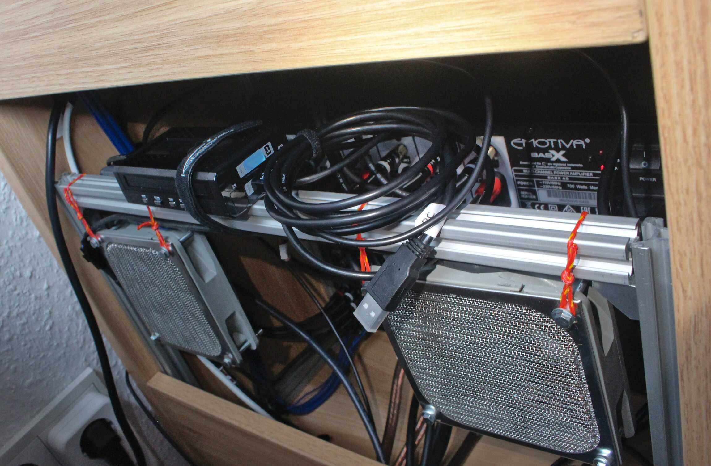 The fans are yet to be hooked up to anything, eventually the trigger-out from the Emotiva will start them up at low speed.