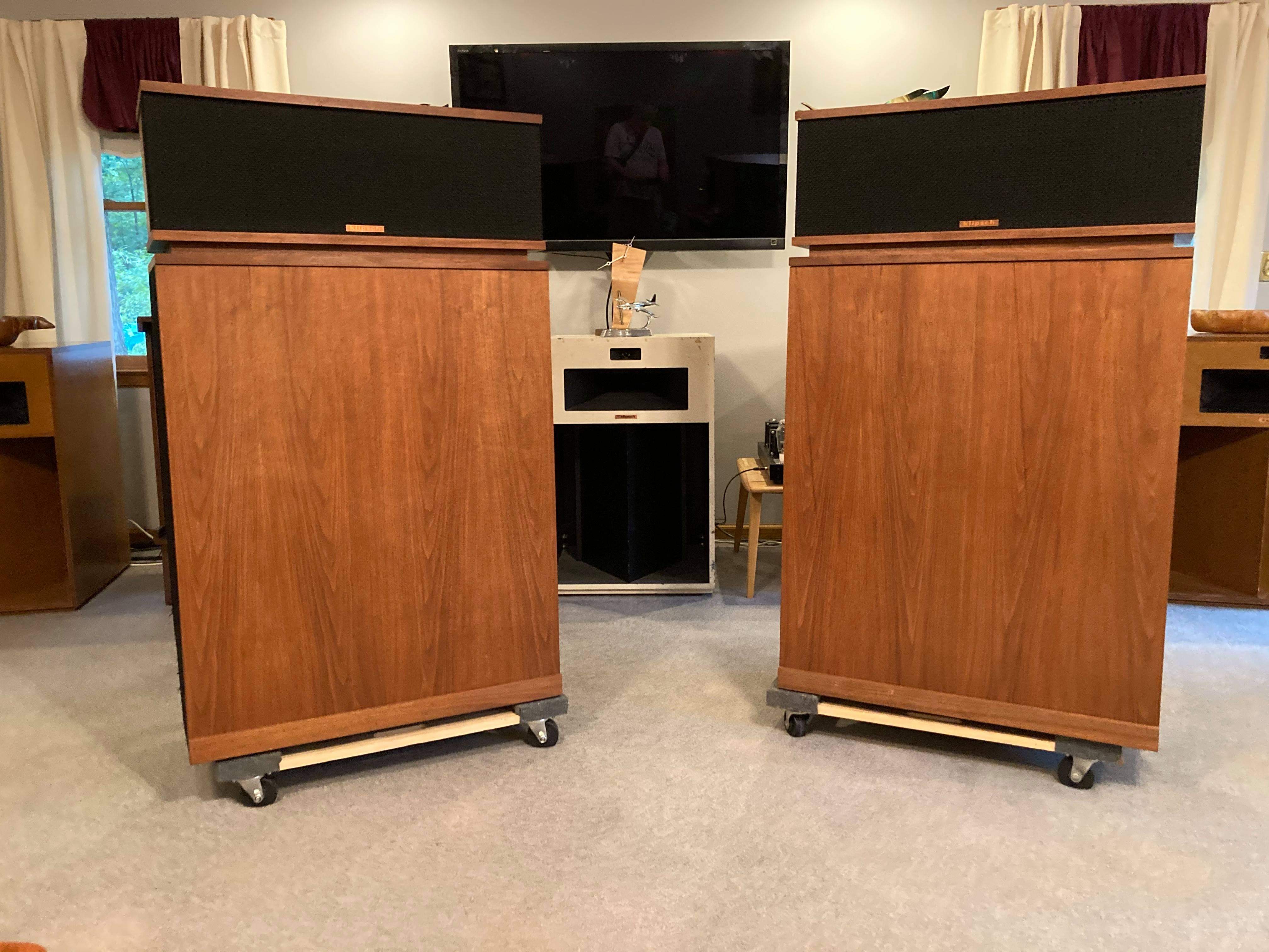 I don’t pass up on Karma or “wild luck” deals, pair of Vintage Klipschorns just showed up in my life. (First thing in the AM and I swear i wasn’t even looking, Facebook magic!!!) Nowhere to put them, store them or even play w/ them currently but damned if I’m not gonna drive the 20 mins down the road to buy them today