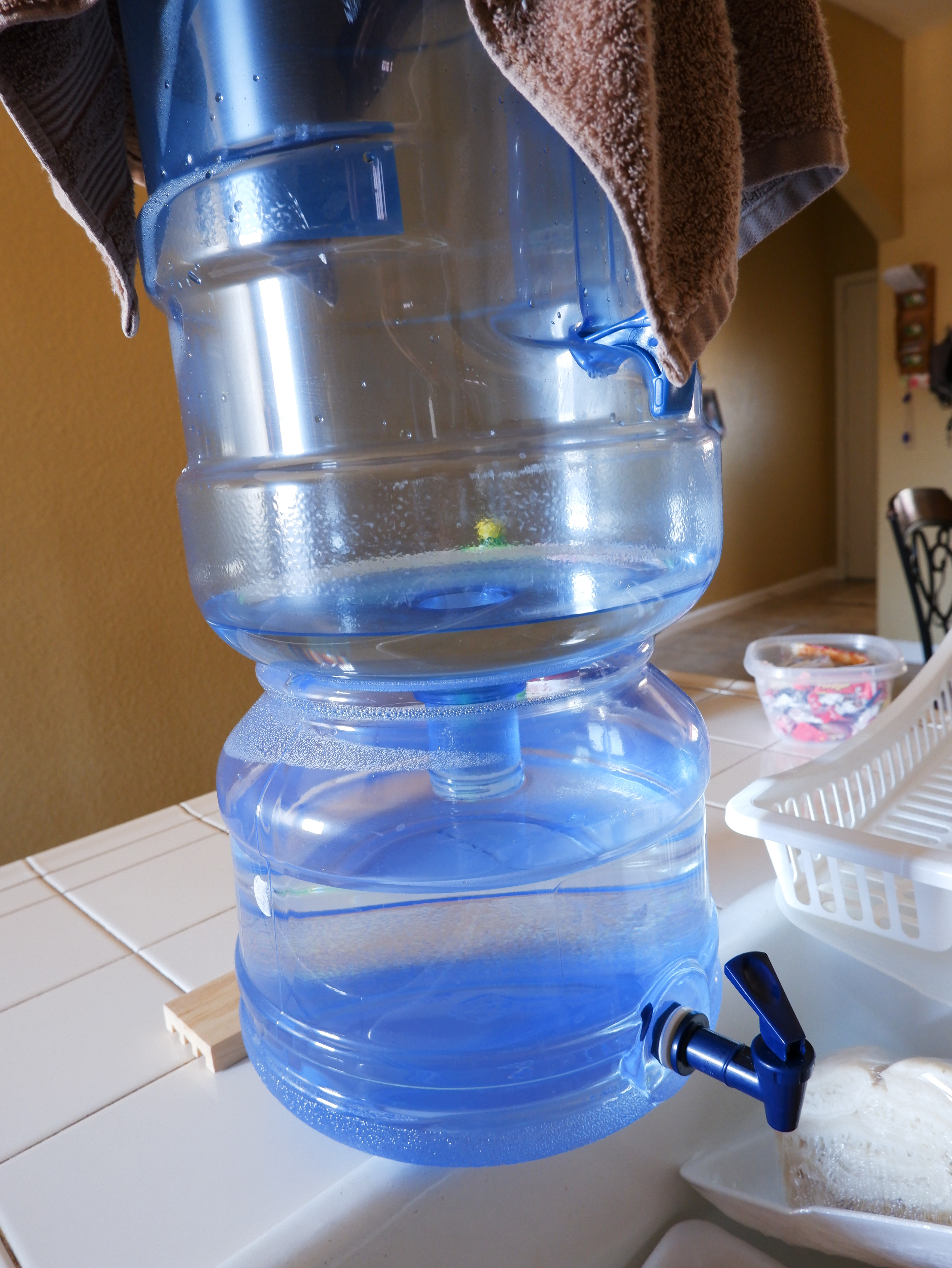 Next, we found this dope ass half water gallon with a release so that you basically just put a full water gallon upside down and can release the water. I know that you can buy a water despenser or even little gadgets to siphon the water out however this little thing is so damn simple, works phenomenal and only costed 13 bucks. Was an absolute improvement.