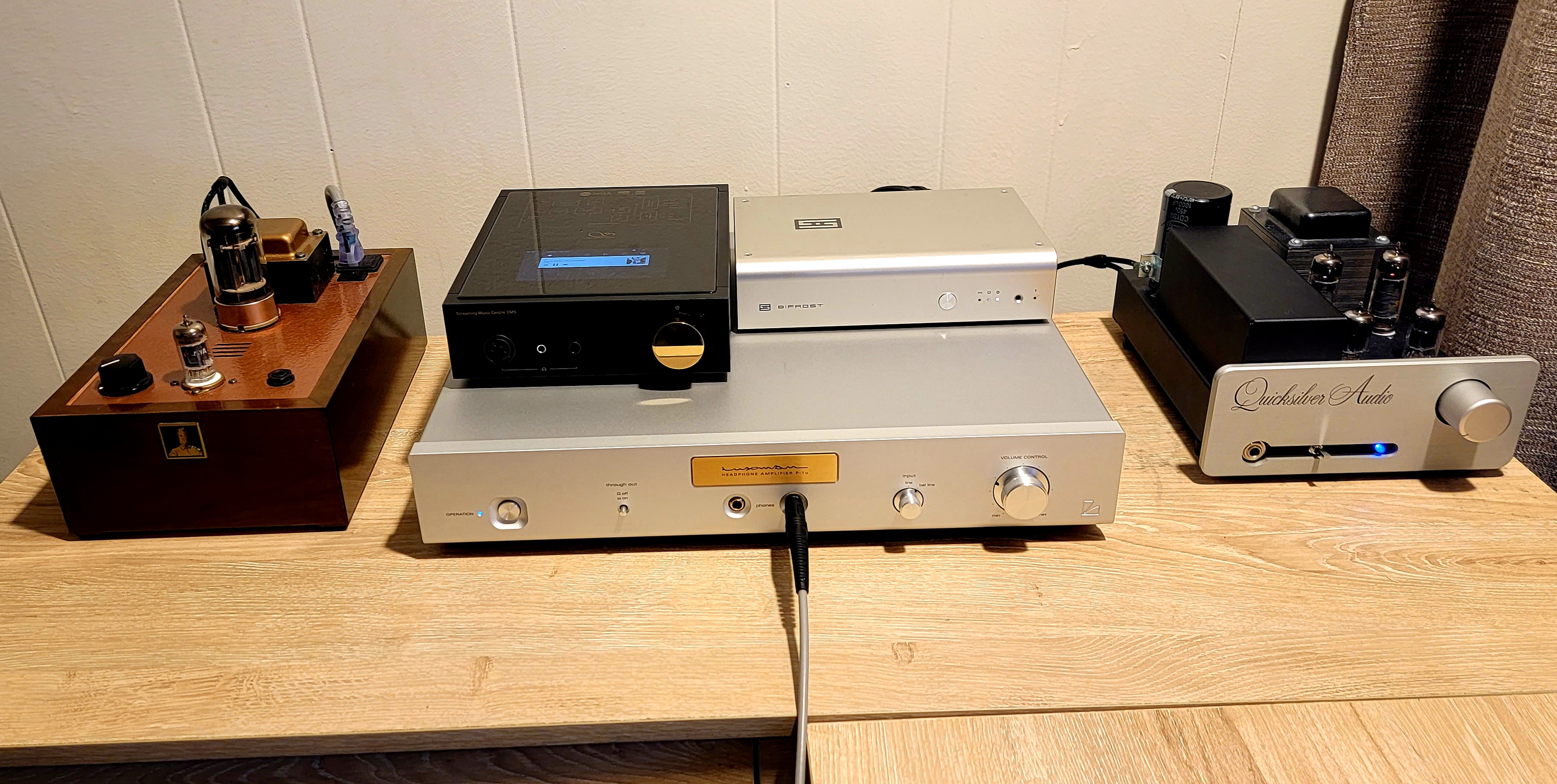 Luxman P1u just arrived. I won’t get into any detailed impressions just yet. But I will say that so far the impressions are extremely positive. Also, this amp is HUGE. I had to remove my risers to fit it on my desk, but I made it work.
